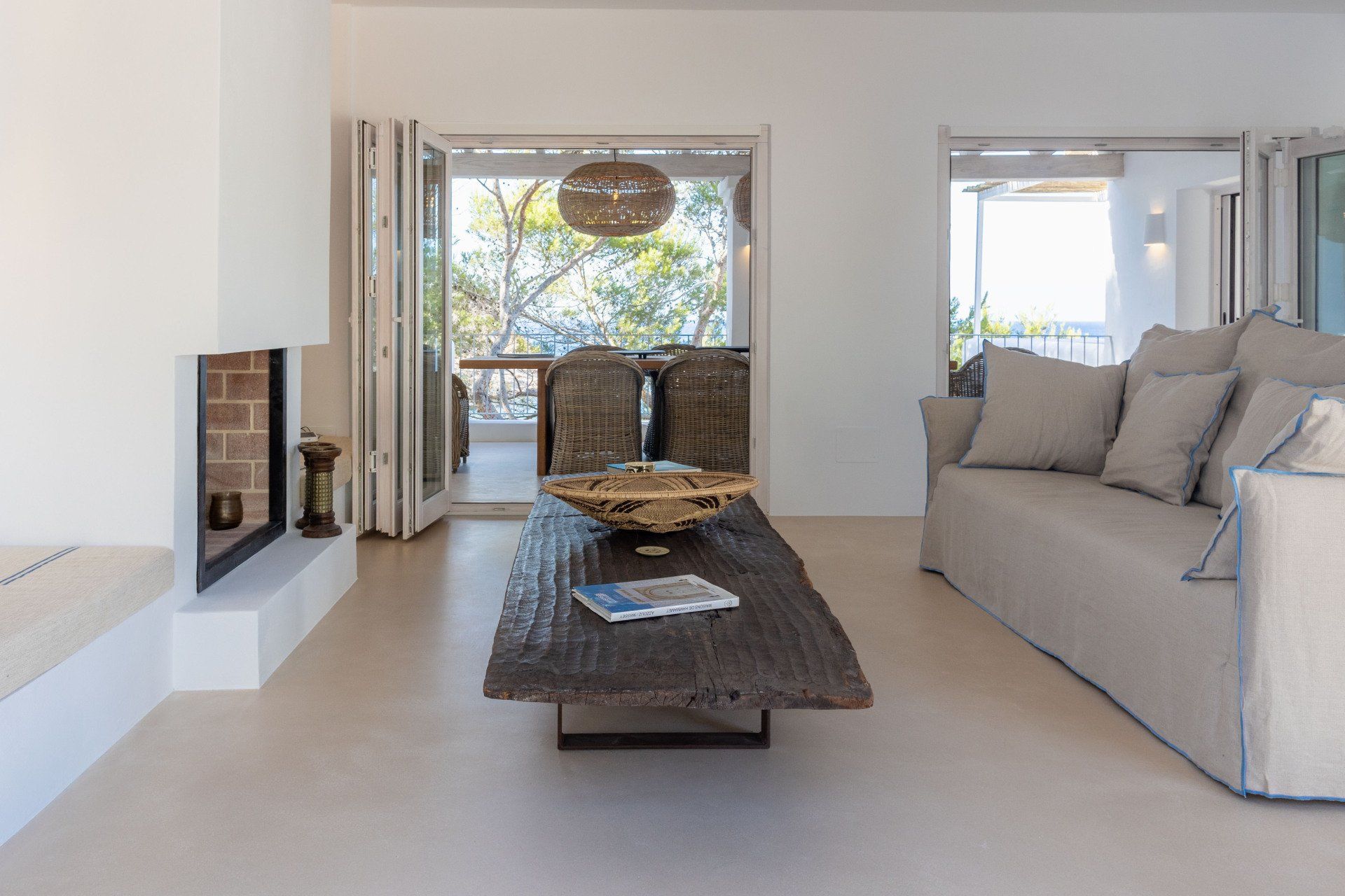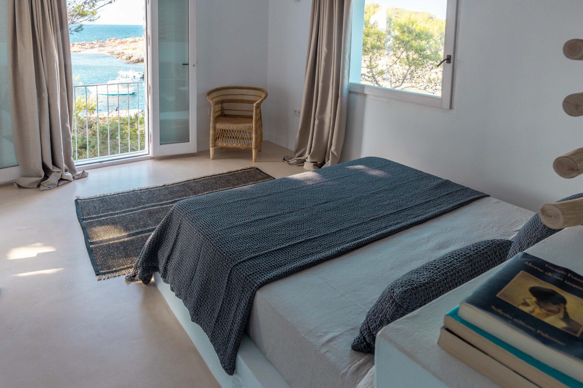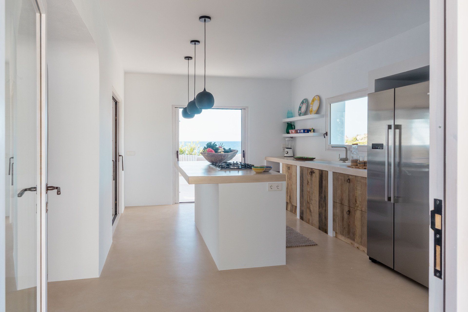 The rustic style of the house is carefully designed in line with its natural surroundings, where each room has its own distinct character and unparalleled views of the crystalline sea.
