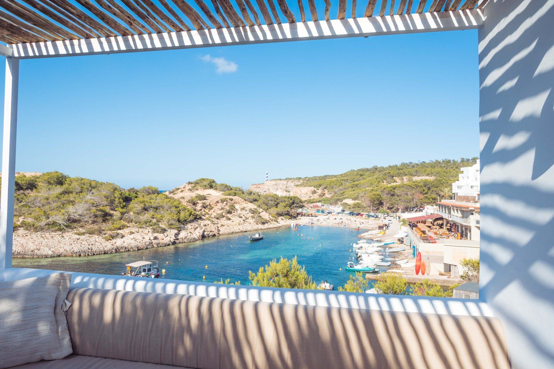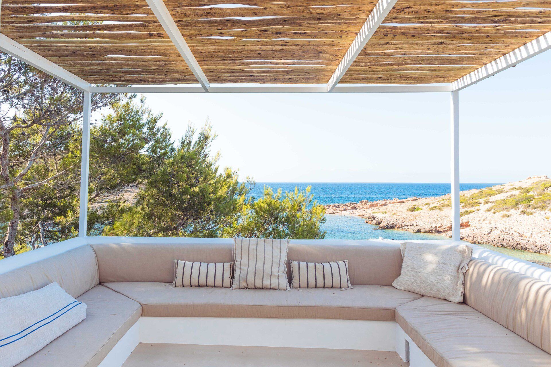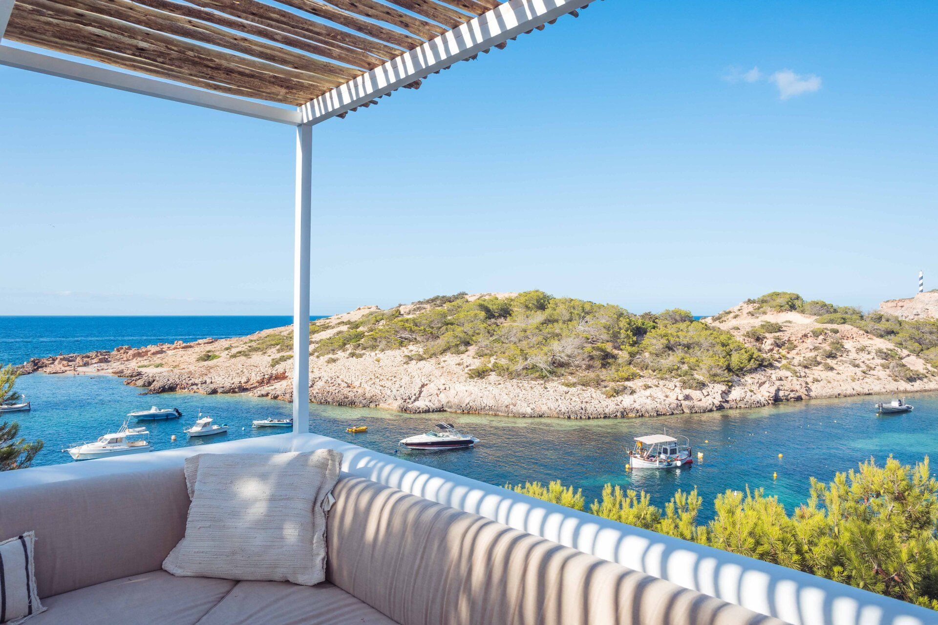 Portinatx is considered by many as a hidden gem in Ibiza. This villa is situated in the perfect location, with a unique elevated position directly above the sea. Just a minute from the sea, you will experience incredible sea views with its prime location on the quiet northern shore line of the island, a stone's throw from Los Enamorados.